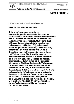 En marzo de 2009, se nos comunica el Informe del Director General que de manera firme señala: "Mientras que el Gobierno ha señalado que la aplicación de la legislación nacional relativa a seguridad y salud en el trabajo depende de una colaboración entre Gobierno, por una parte, y los empleadores y trabajadores por la otra, el Comité señala que la legislación nacional así como del artículo 4 del Convenio núm. 150 y del artículo 9, párrafo 1, del Convenio núm 155, se desprende que la responsabilidad de asegurar el cumplimiento de las leyes y reglamentos incumbe exclusivamente al Gobierno, que debe ejercerla, entro otros medios, a través de un sistema de inspección del trabajo de ámbito regional y local" (Numeral 76). Para leer el informe haga clic en el botón: